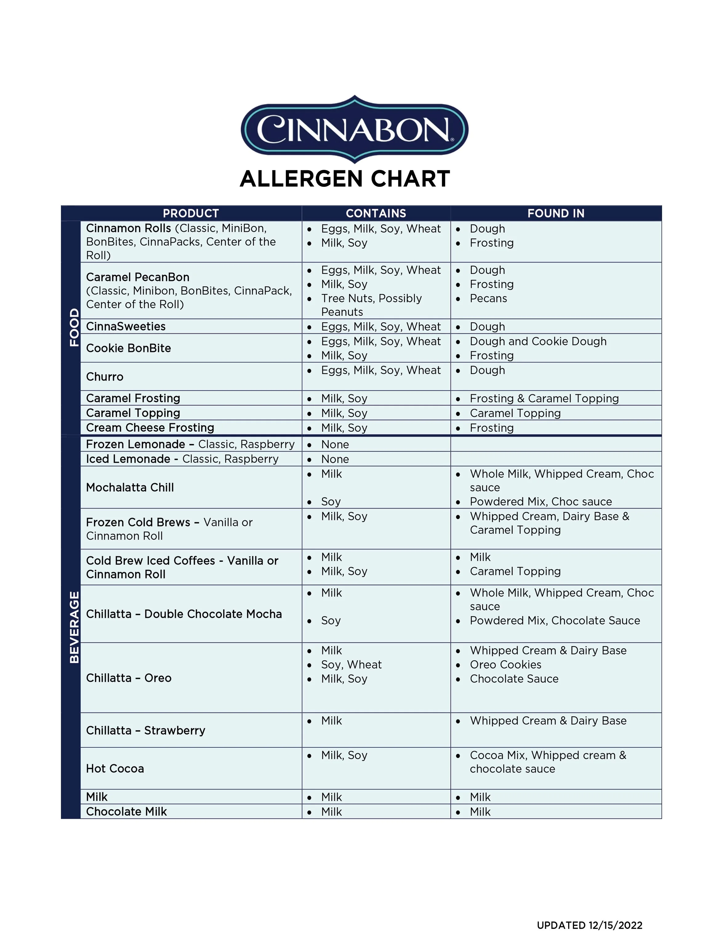 At Cinnabon, we believe everyone should be able to enjoy their favorite treat with peace of mind. That’s why we make our allergen information clear and accessible in all our bakeries – and now also online.
