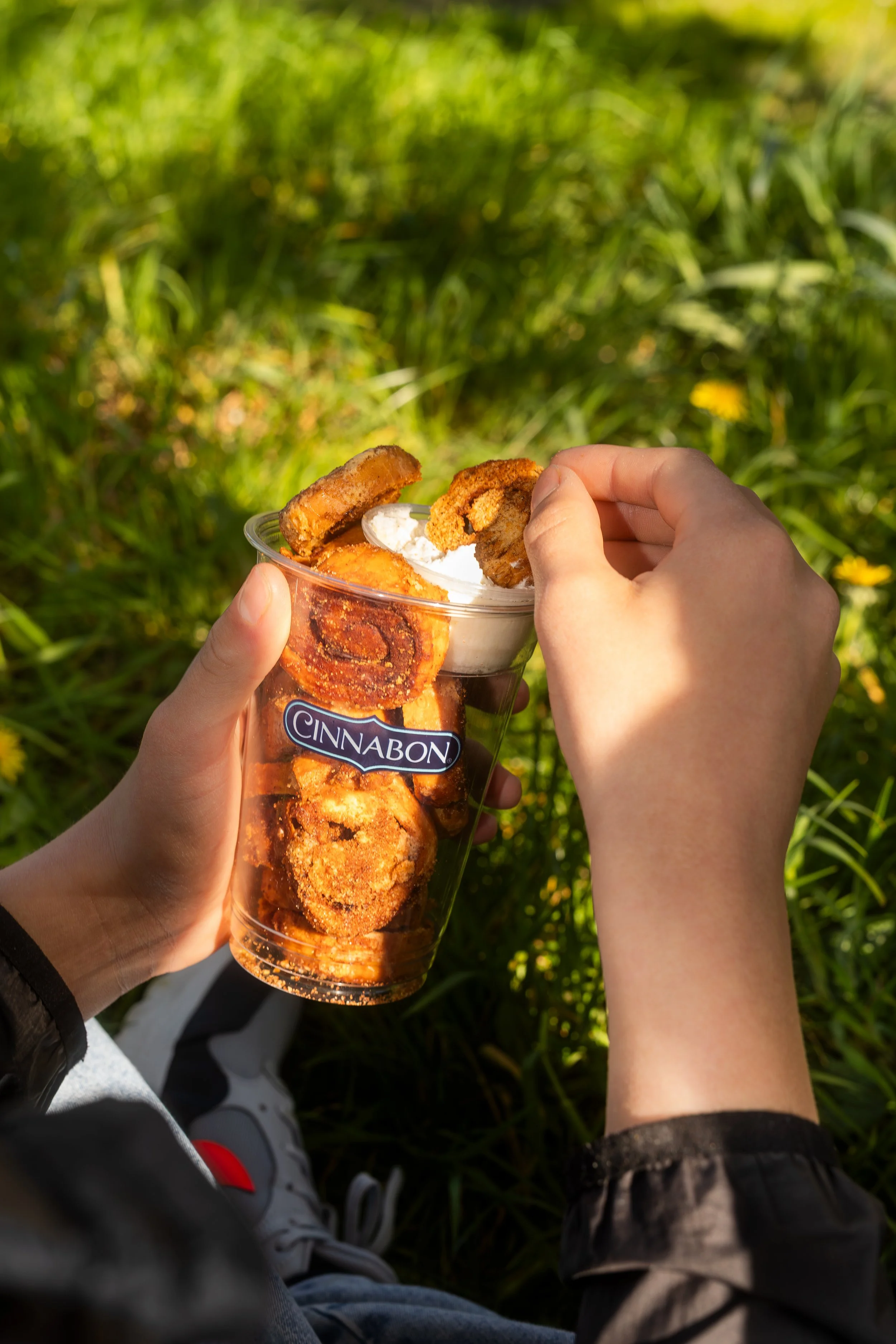 Our Menu CINNAMON ROLLS MINIBON® BONBITES® EXTRAS DRINKS CHILLATAS® BOBA refreshers Cinnabon® The roll that started all Classic 5,25 Chocobon 5,50 Caramel Pecanbon 5,75 Pistache bon 5,75 A fun size delight Classic 3,75 Chocobon 3,95 Caramel Pecanbon 4,25 Pistache bon 4,25 A little taste of happiness Classic 8,50 Chocobon 8,75 Caramel Pecanbon 8,95 Make it yours. Top it your way. Side Of Cream Cheese Frosting 1,50 Side Of Pecans 1,50 Side Of OREO® Cookie Pieces 1,50 Side Of Caramel Frosting 1,50 Side Of Chocolate Sauce 1,50 Side of Smarties 1,50 Side of Cherry 1,50 Side of Lotus Biscoff 1,50 Creamy, Dreamy, Cool or Steamy Espresso 3,00 small / 3,75 large Coffee 3,00 small / 3,95 large Capuccino 3,25 small / 3,95 large Latte 3,25 small / 3,95 large Mocha 3,00 small / 3,75 large Tea 3,00 Cool, creamy, and oh-so dreamy. Mango 5,50 Chocolate Mocha 5,50 Caramel Latte 5,50 Strawberry 5,50 Whip-cream 1,00 Bursting with flavor, popping with fun. Boba refresher Mango 5,50 Boba refresher Blueberry 5,50 Boba refresher Strawberry 5,50 Cinnamon Rolls ChocoBon™ Topped Bons Cinnachips Official Merchandise Cinnapacks Drinks Celebration Box